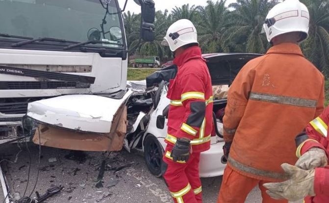 “Setibanya di lokasi pada 9.34 pagi, didapati sebuah kereta Honda bertembung dengan lori treler menyebabkan lima mangsa dalam kereta tersepit.