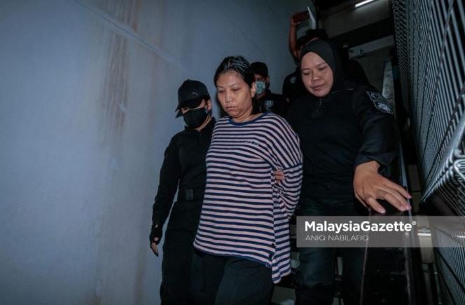 Terdahulu wanita itu yang dalam keadaan bergari dibawa polis ke mahkamah dengan mengenakan baju T berlengan panjang dan berseluar hitam.