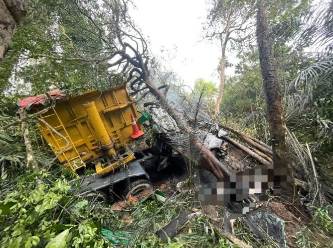 “Kemalangan tersebut melibatkan sebuah lori jenis Volvo yang dipercayai terbabas sendiri sebelum terjunam ke dalam gaung dan terbakar.