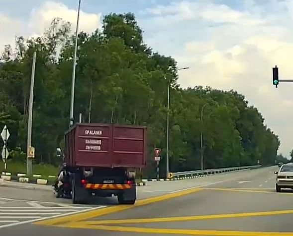 Video kemalangan yang tular di platform media sosial itu memaparkan sebuah lori membelok ke kiri selepas terlepas simpang sebenar sewaktu lampu isyarat bertukar hijau.